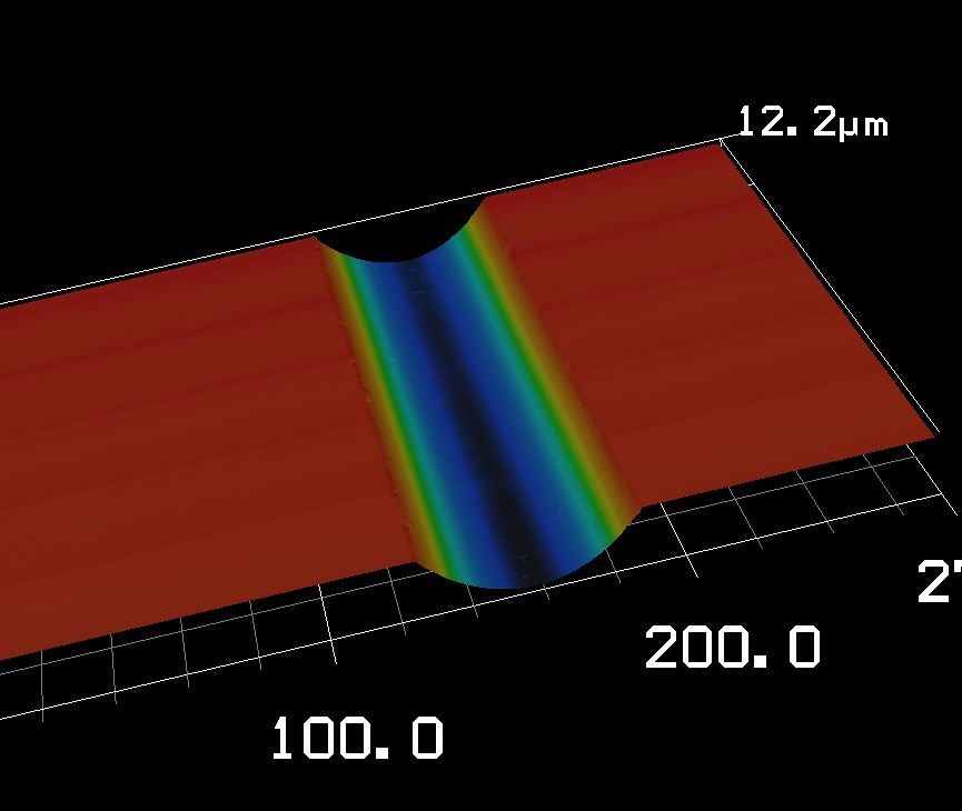 | 三棱錐超精密切削 | HRC52度模具鋼切削,深度1.5um | STAVAX模具鋼入光鋸齒直接切削 | STAVAX模具鋼VCUT直接切削 |